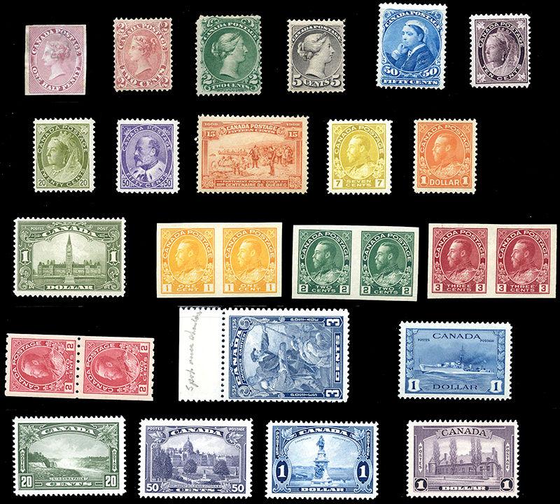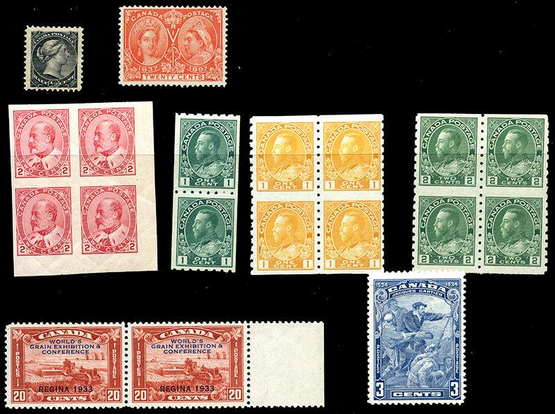 50/216,etc: Collection of over 160 with both mint and used 1897 to 1935 with mint Jubilees to $1, Quebecs to 20¢, 1935 Silver Jubilee, plus some worldwide used not included in totals, some a bit mixed, much is f-vf. Inspect.