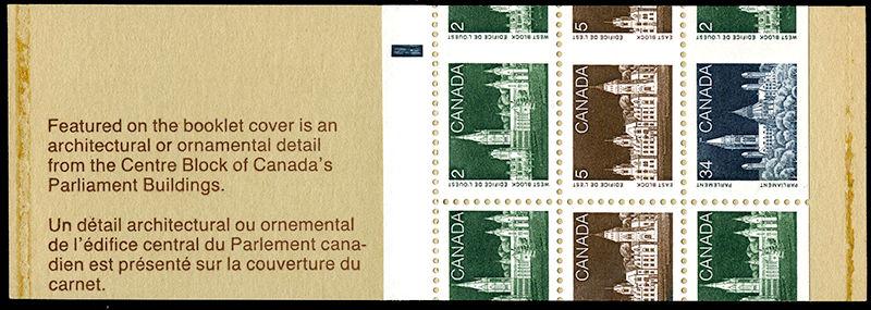 COMPLETE BOOKLETS: BK88var: 50¢ Parliament Buildings complete booklet, DRAMATICALLY MISCUT one-third of the way through the stamps, nh and spectacular. (Image)