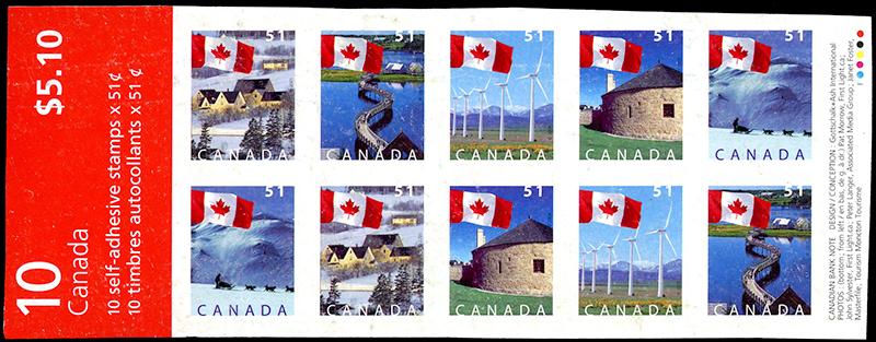 COMPLETE BOOKLETS: BK317ii: 51¢ Flag pane of 10, with all DIE CUTTING OMITTED, nh, very fine (Image)
