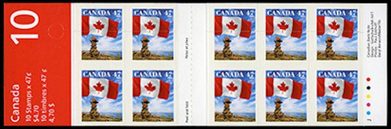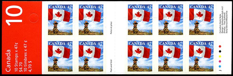 BK236A var: 47¢ self-adhesive Flag COMPLETE BOOKLET with PANES MISCUT HORIZONTALLY through top of top row of stamps, leaving imperf between. nh. Scarce. (Image)