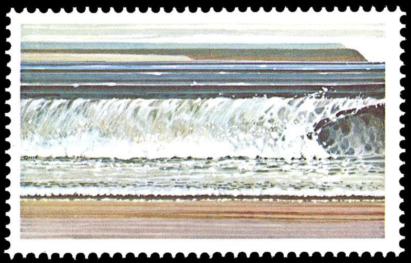 1362b var: 45¢ Flag over building, top margin IMPERFORATE GUTTER BLOCK OF 20, with misaligned printing creating a blurred design, nh, very fine. 2017 Greene Cert (Image)