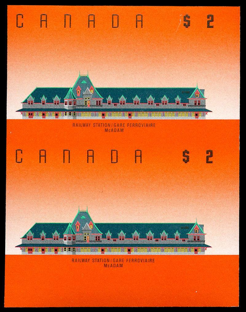 1182a: $2 McAdam Railway Station, IMPERFORATE PAIR, nh, very fine (Image)