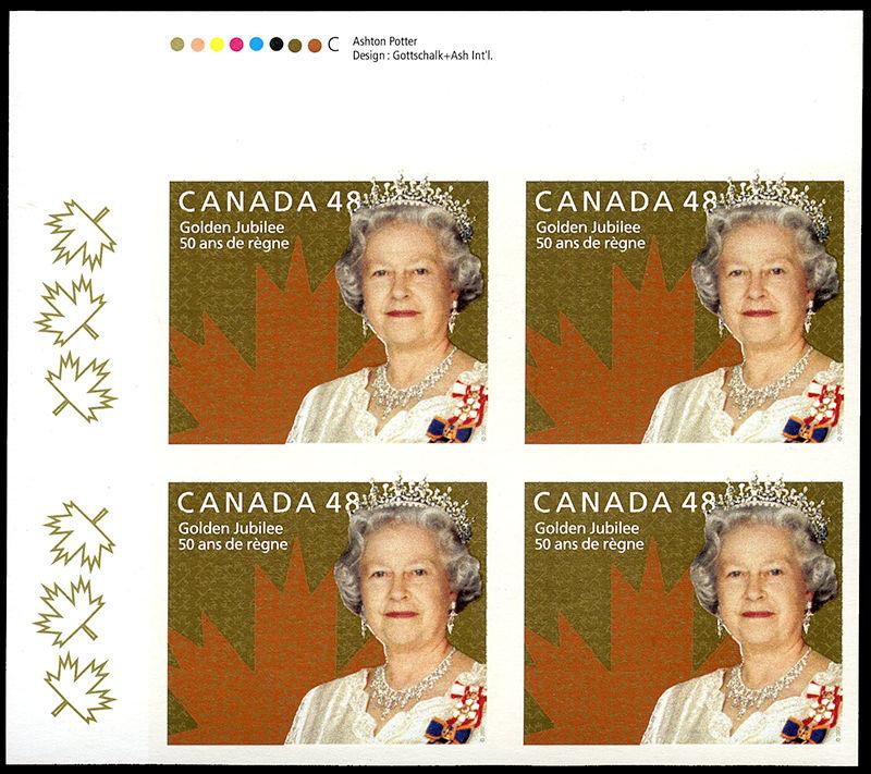 1932a: 48¢ Elizabeth II Golden Jubilee, UL IMPERFORATE INSCRIPTION BLOCK OF FOUR, nh, very fine (Image)