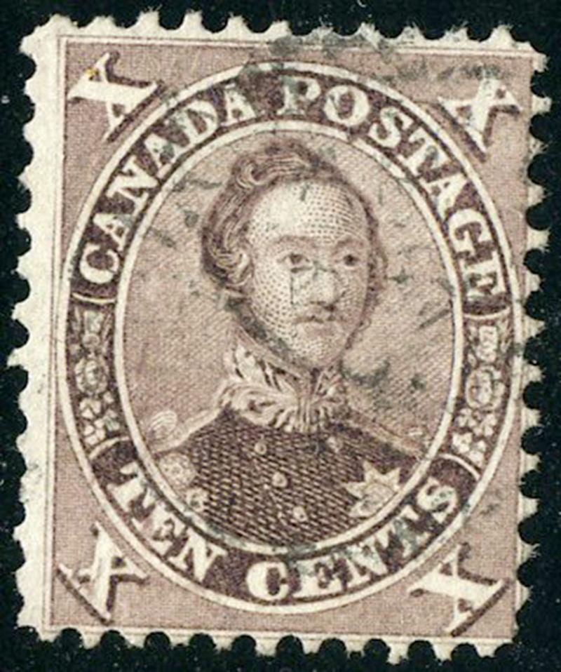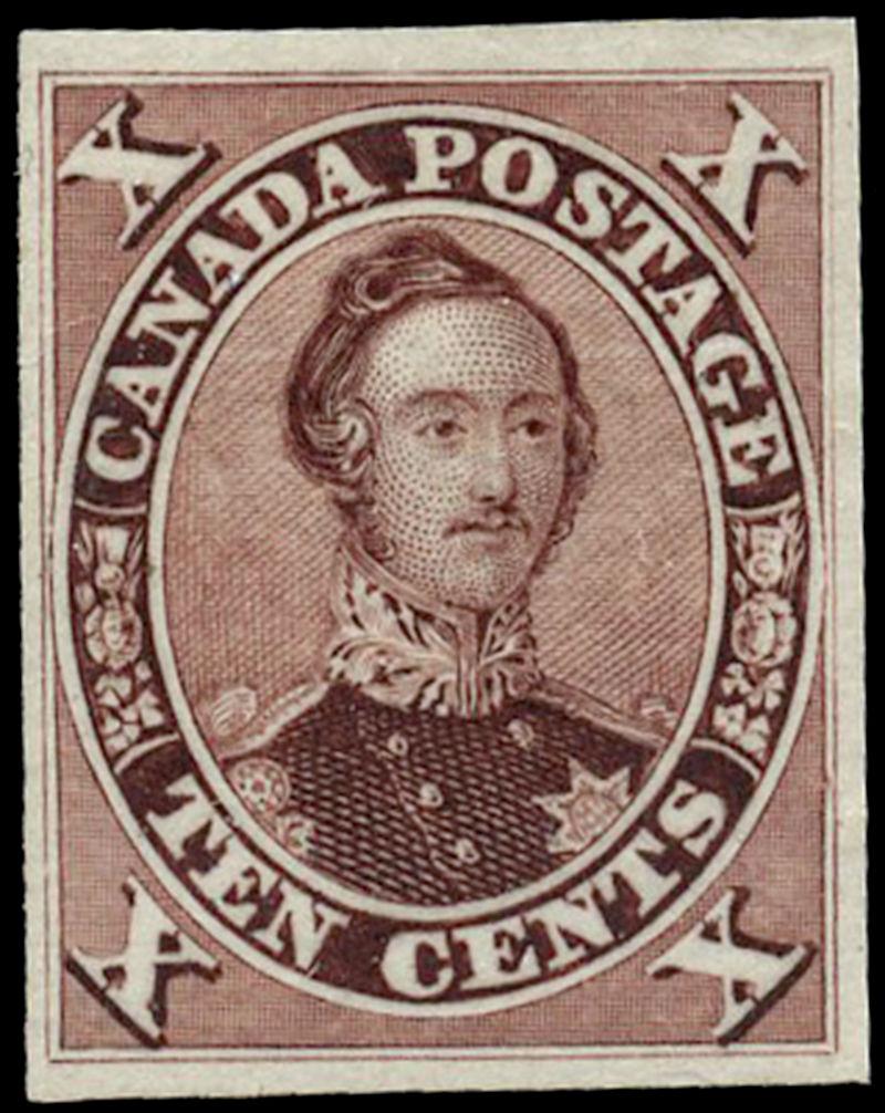 17e: TEN CENT: DEEP RED PURPLE, perf 11¾ (PO3B, purple brown), a couple of perf problems otherwise, fine. (Image)