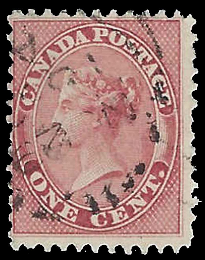14ii: ONE CENT: ROSE on VERY THICK PAPER, neat 1862 cds, usual small thins, appears fine. (Image)