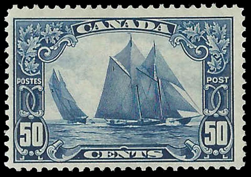 158: 50¢ Bluenose, og (black adhesions on gum), hh, fine. (Image)