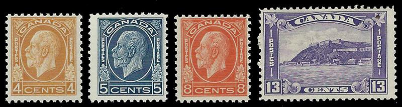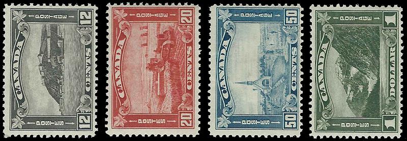 141-145: 1¢ to 12¢ 1927 Confederation Issue complete, og, mostly lh, f-vf. (Image)