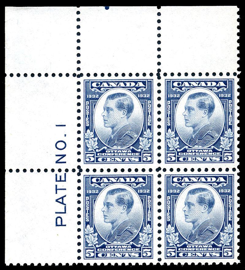 193: 5¢ Economic Conference, Plate 1 UL block of 4, nh, very fine (Image)