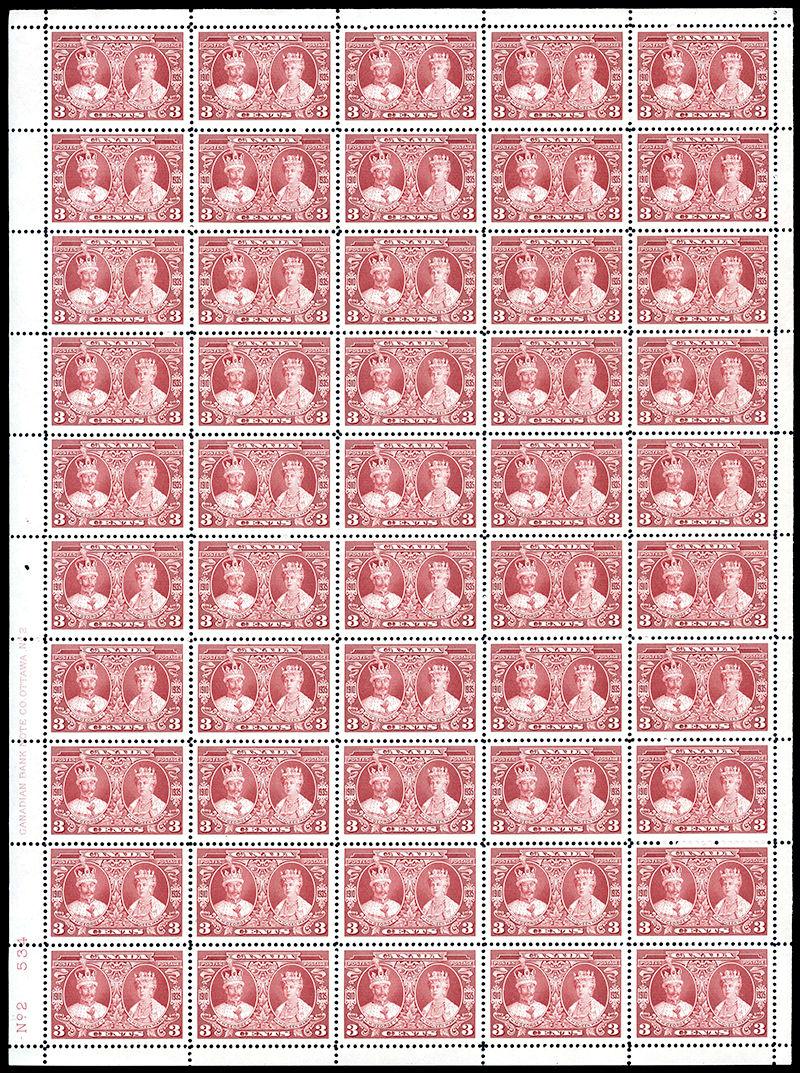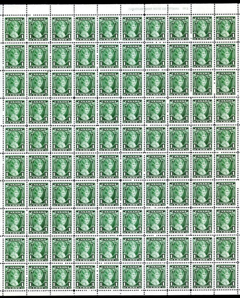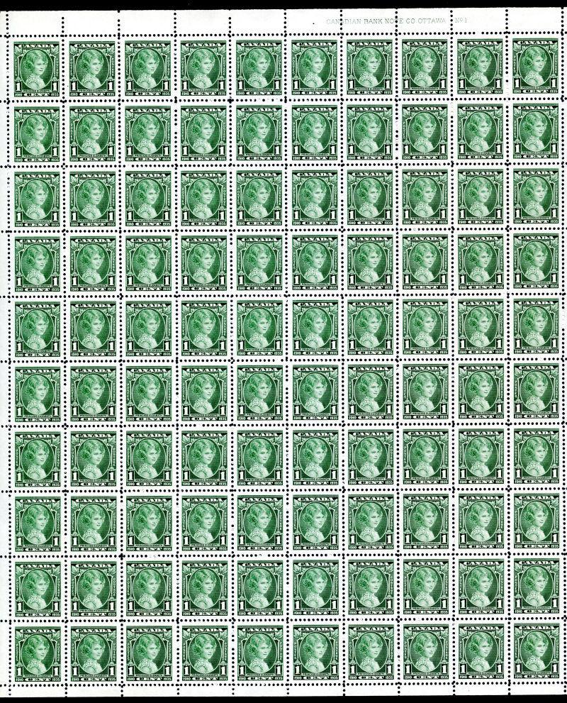 211: 1¢ Silver Jubilee, Plate 2 UR sheet of 100, light UR selvedge fault, otherwise nh, very fine (Image)