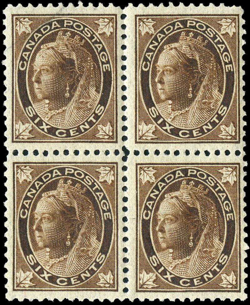 71: SIX CENT: BROWN, block of four, fresh, nh, fine (Image)