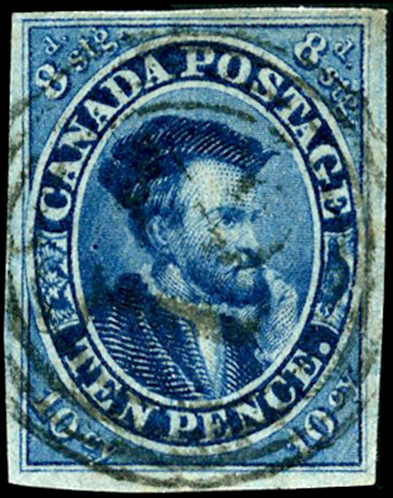 7: TEN PENCE: BLUE on THIN PAPER, used, full to large margins, SON 4-RING-21, very fine. 1961 RPS Cert (Image)