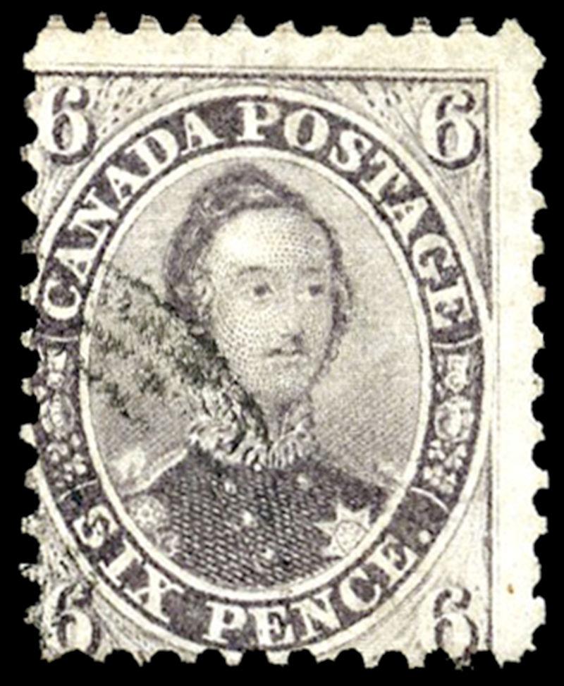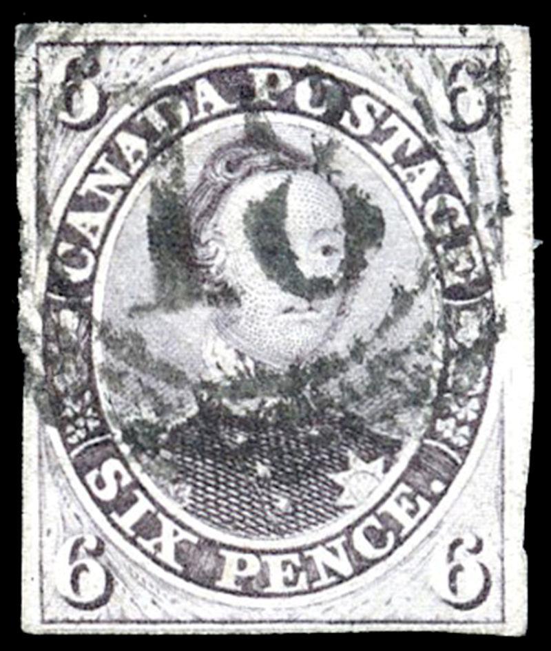 13: PERFORATED SIX PENCE: BROWN VIOLET, used, off centre, fault free (Image)
