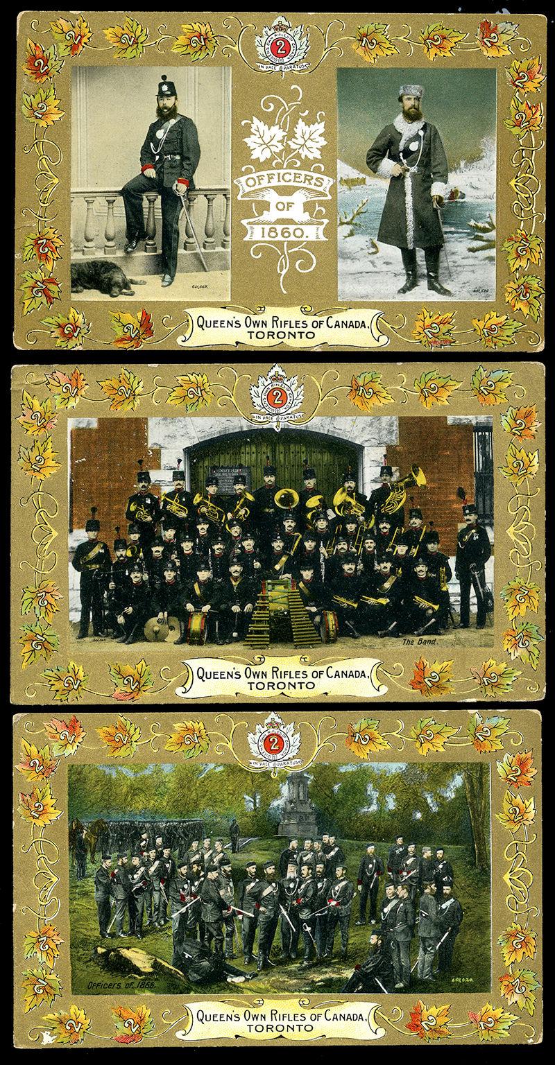 PICTURE POST CARDS: PATRIOTICS: Thirty-seven different, with Queen's Own Rifles, Homestead Life, Cooper, Warwick, Talbot, etc, some used with adhesives, mostly f-vf. Inspect. (Image)