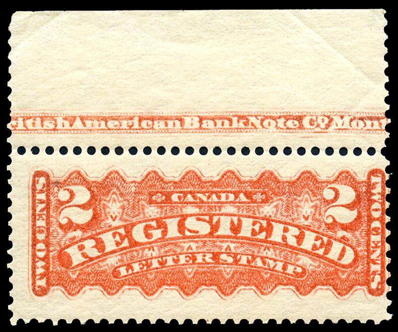 F1biv: TWO CENT: VERMILION, top margin (B)ritish American Bank Note Co Mont(real) imprint single, nh. (Image)