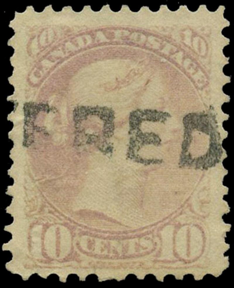 40e: TEN CENT: PALE MILKY ROSE LILAC, perf 11½x12, first printing, centered copy with straight line (REGIS)TERED cancel, faulty, good reference of rare shade. (Image)