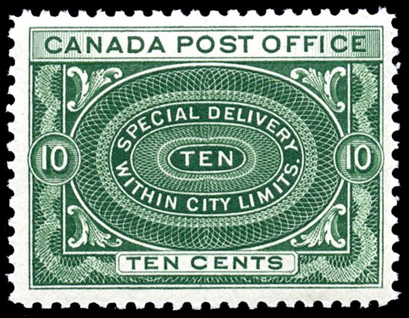 SPECIAL DELIVERY: E1a: 10¢ green, nh, very fine (Image)