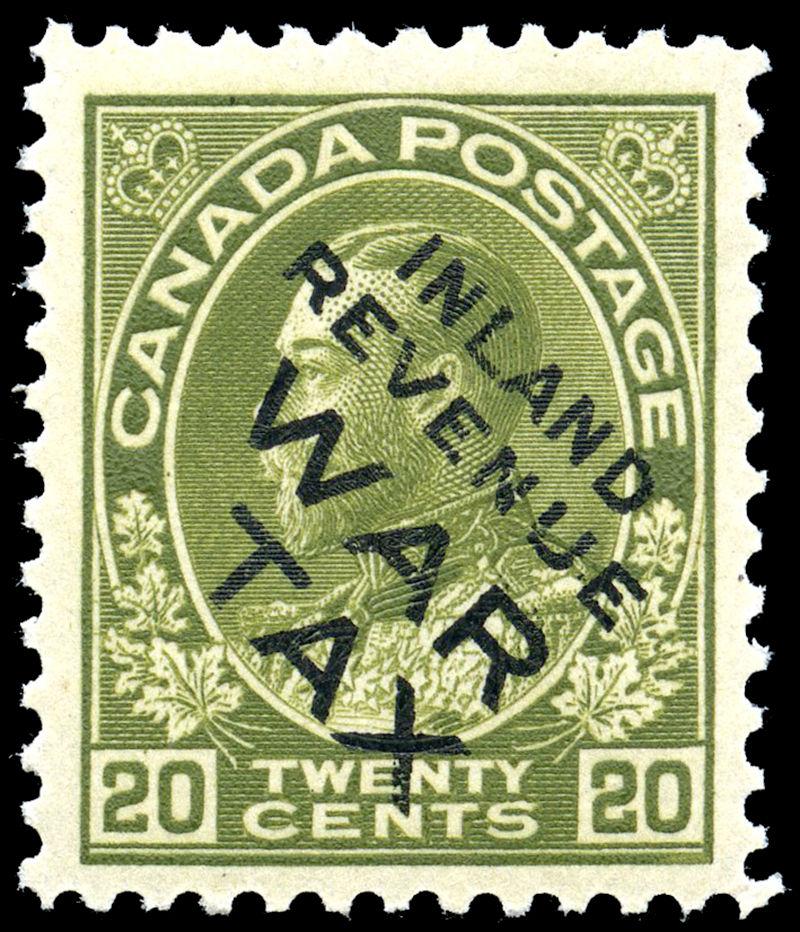 WAR TAX: MR2Ci: 20¢ olive green with INLAND REVENUE WAR TAX overprint, nh, very fine. 2025 Gratton Cert (Image)