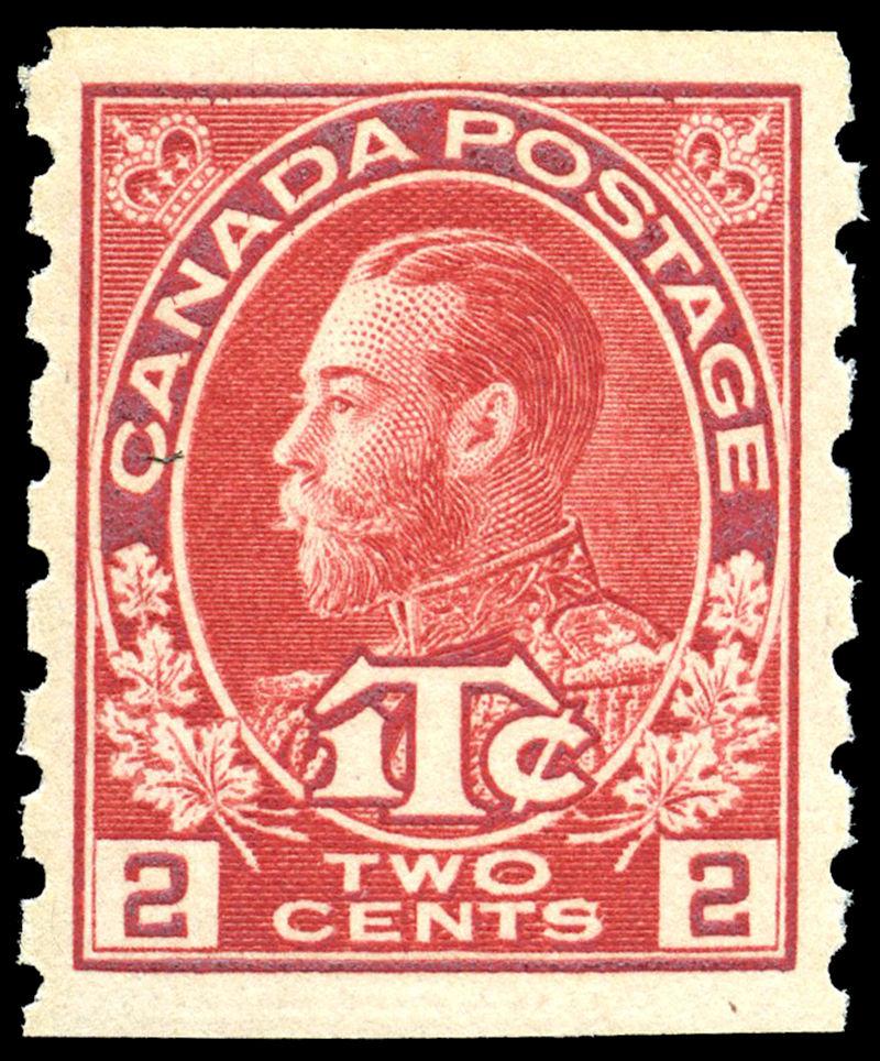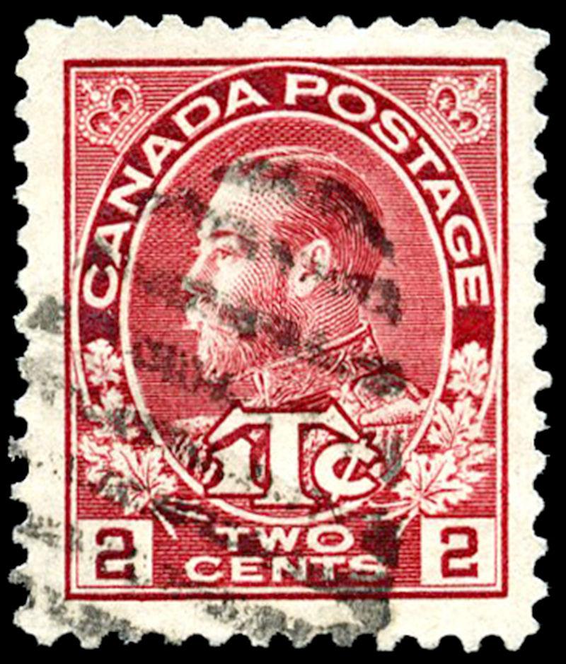 WAR TAX: MR3var: 2¢ + 1¢ carmine, die I, used showing MAJOR RE-ENTRY in outer portrait oval above "NA", in bottom of "ADA", and "POS", and along left edge of portrait, creases. ex Saskatoon (Image)