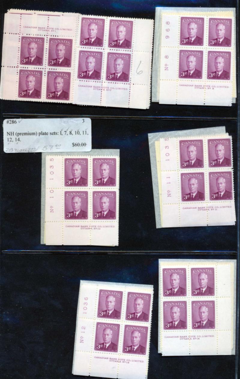 CANADA ACCUMULATION BLOCKS & PLATE BLOCKS F-VF **/O. Large binder containing an accumulation of blocks, plate blocks, booklet panes and stamps mostly mint never hinged between numbers 284 and 1171. Some duplication, need to be examined. Owner's catalog $6200.00. (Image1)