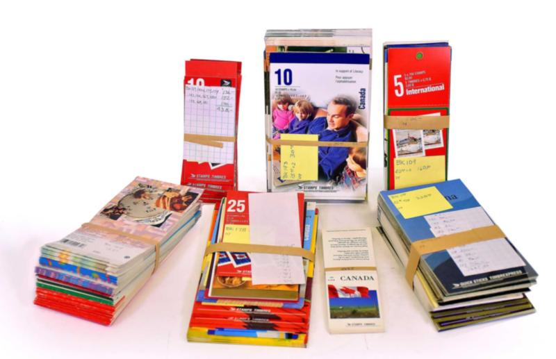 CANADA ACCUMULATION, BOOKLETS VF **. Box containing a large accumulation of booklets all identified by Unitrade numbers. Very high face value. There is duplication. Unitrade 2009 $5370.00. (Image1)