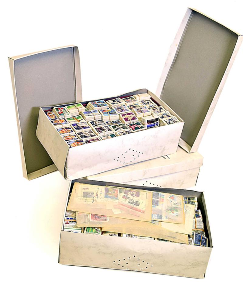 CANADA ACCUMULATION COVERS + CARDS. Bin containing 7 boxes with few thousands posted covers and front covers with Post Par franking + cards from post Canada philately. Very heavy lot. Starting bid $50.00. (Image1)