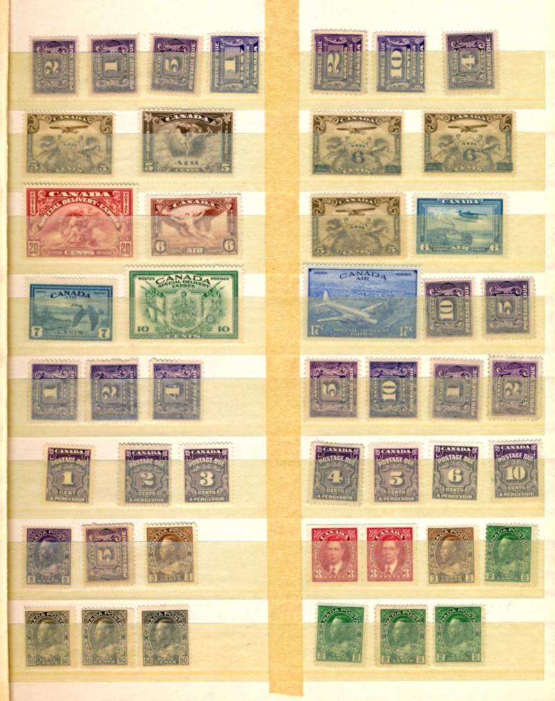 CANADA ACCUMULATION, STAMPS F */**/O. Stockbook containing approximately 800 stamps mostly all used. Duplication on some stamps. #122 x6, 145 x50, #146 x15, 148 x4, #156 x22, #174 x22 and #176 x15, #177, #C1, #E1, #E2 x3, #E3. Also some mint stamps (Unitrade $100 ++). Interesting lot. Starting bid $120.00. (Image1)