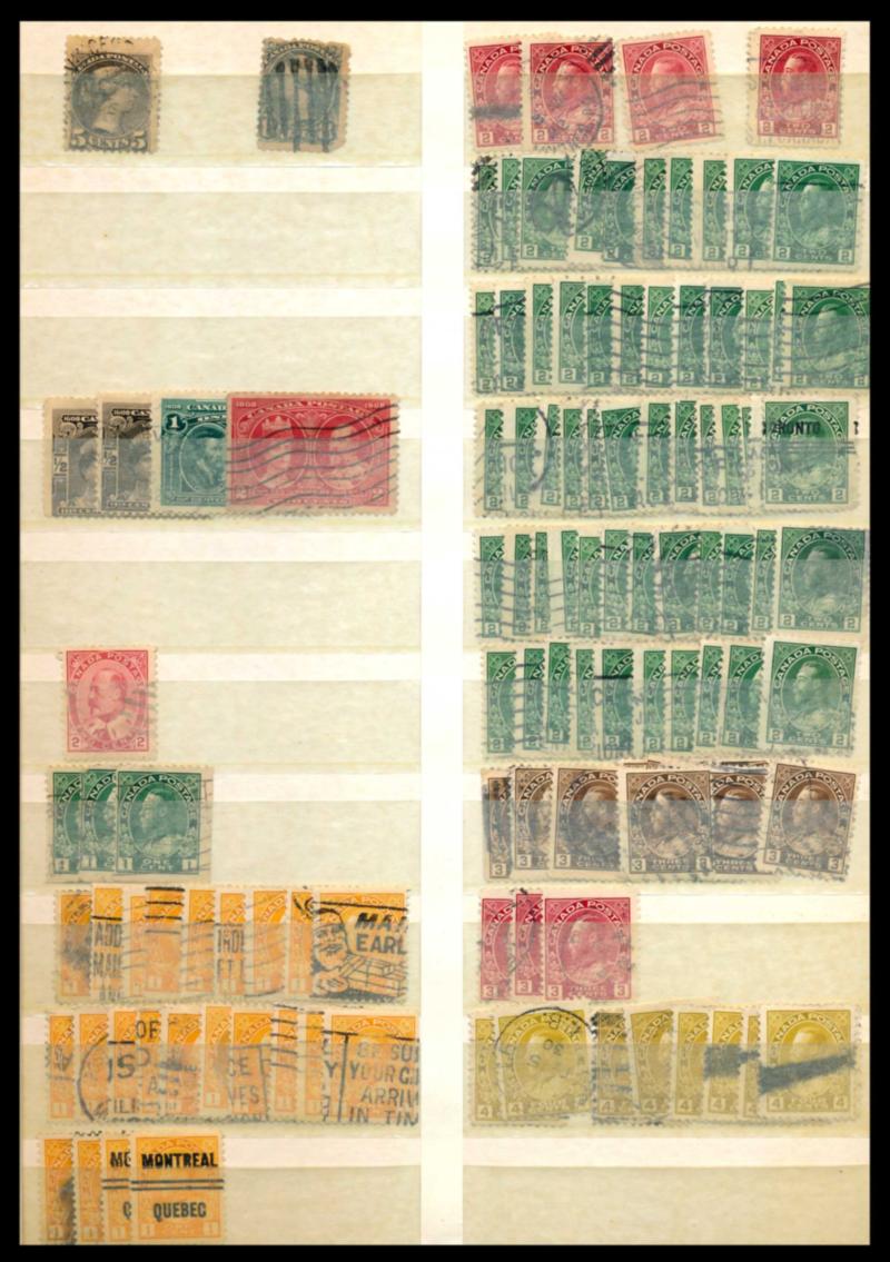 CANADA ACCUMULATION, STAMPS F-VF */**/O. Large box containing many thousand stamps in 8 stockbooks, 3 binders and 3 small boxes. This lot was not checked and contains interesting stuff, must be examined. Starting price $150.00. (Image1)