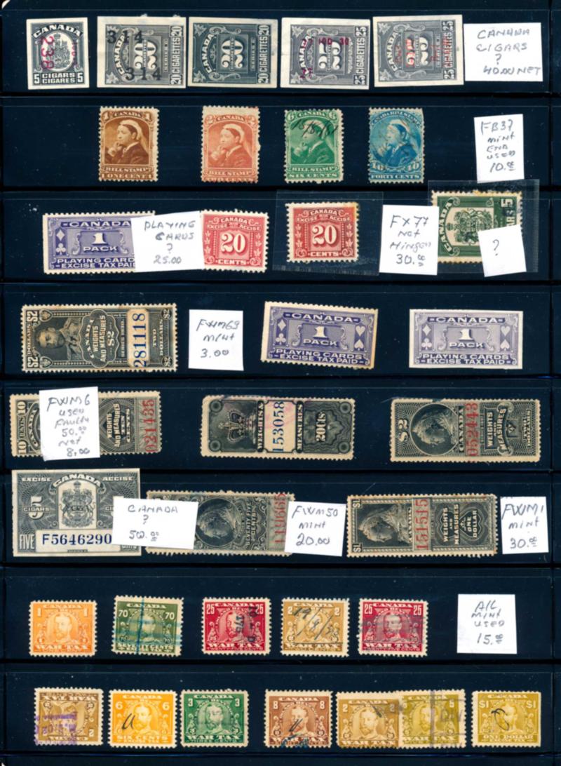 CANADA REVENUES & USA POSTAL STATIONERY F-VF */O. 1 album Scott Specialty with US postal stationery cut square, covers and cards + 1 binder with Canada revenues. To be checked. Starting bid $100.00. (Image1)