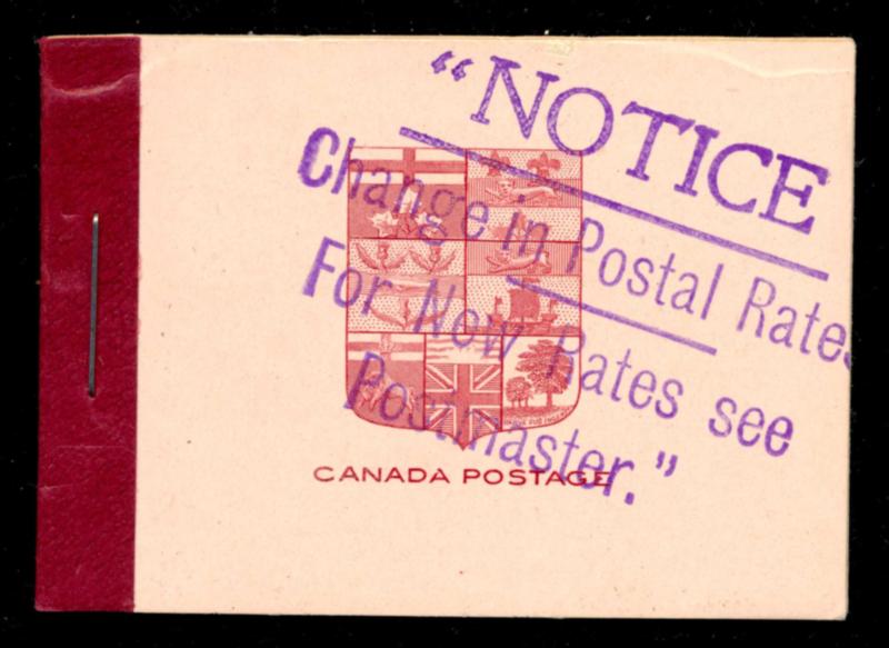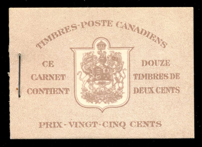 CANADA 1937 #BK29c BOOKLET VF **. King George VI, Mufti issue, complete French booklet of 2 panes of 6 stamps (#232as), Type II 6c airmail rate. Booklet is not bend, Unitrade $140.00. (Image1)