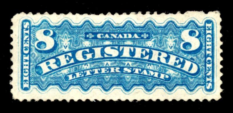 CANADA 1876 #F3 STAMP VF /O. Registration stamps issue, 8 cents very lightly canceled and very well centered. Unitrade $450.00. (Image1)