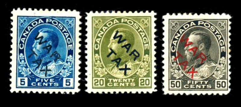 CANADA 1915 SET #MR2B-2D STAMPS F *. War Tax issue, set of 3 stamps mint lightly hinged. Scarce stamps. Unitrade $430.00. (Image1)
