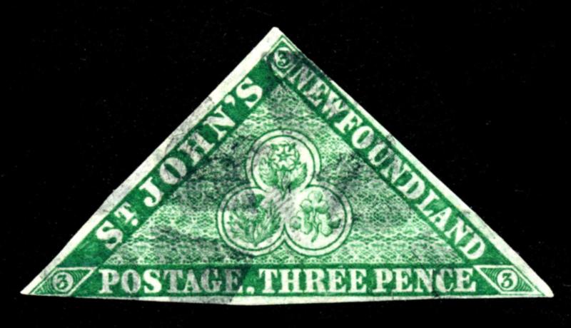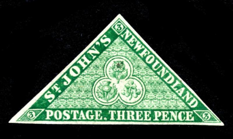 NEWFOUNDLAND 1860 #11A STAMP VF /O. Coat of Arms issue, three pence green mint without gum with full margins all around. 2025 certificate from Vincent Graves Greene Philatelic Research Foundation. Unitrade $120.00. (Image1)