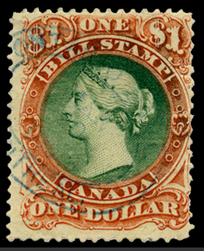 FB33: $1, red and green, 2nd Bill Issue, small faults, scarce and , very fine (Image)