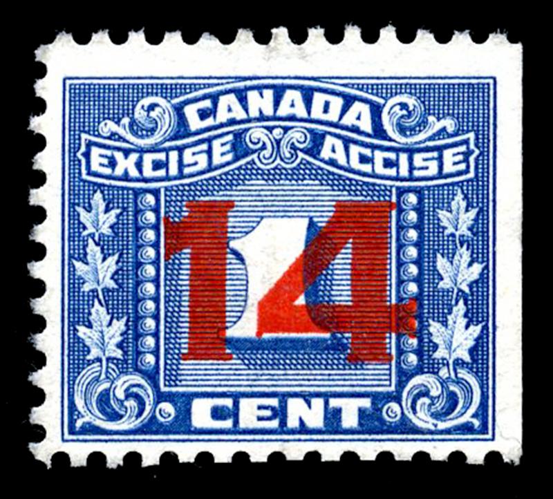 FX115: 14 on 1¢, used, straight edge at right, fine (Image)