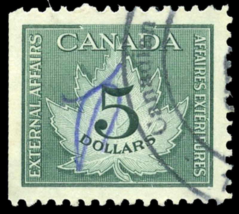 FCF5a: $5 green, used, straight edge left, appears to be yellow gum variety, very fine (Image)