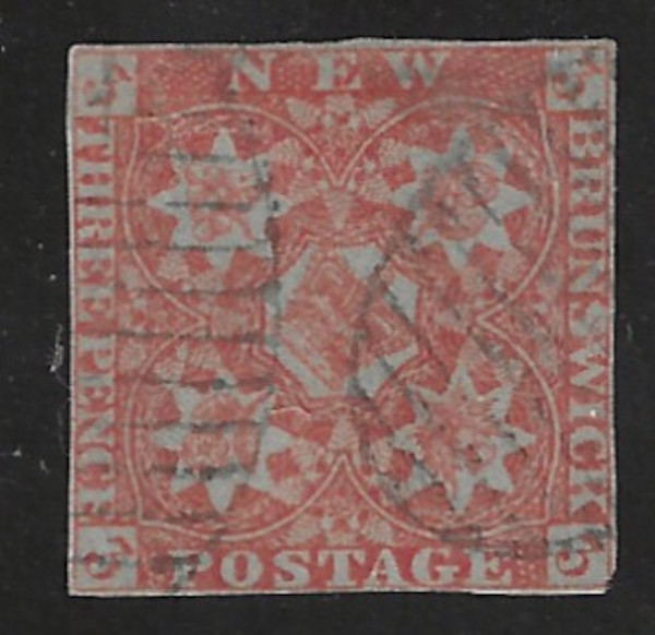 1 "3 p. Red" (1851 Issue), Used, Small Thin, Cut Close, Fine for Issue, SCV is $500.00 (Image)