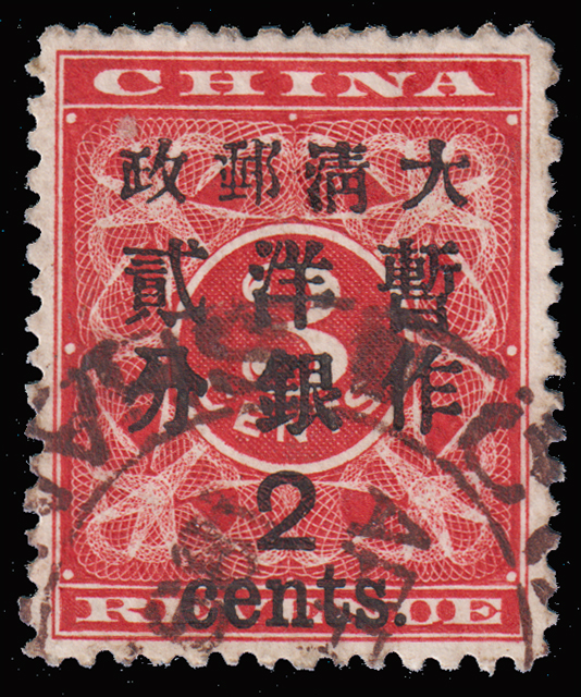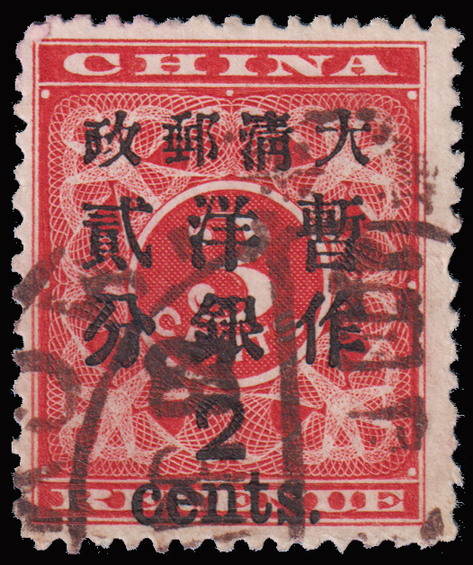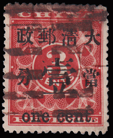 1897 Red Revenue 3c surch. with 1c type 1 with Canton Pakua cancellation. Light thin on reverse. $0 (Image)