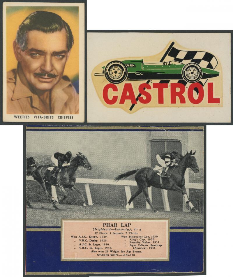 Huge collection in two cartons 1900-90s mainly full or part sets with cards from A&BC, Ampol, Atlantic, Brooke Bond, Dynamic Marketing, Esso, Lamberts, Lipton, Lux, Malties, Nabisco, Nestle, Peek Freans, Players, Sanitarium, Stamina, Sweetacres, Sweetule, VEB Eggs, Wills; few decals; 1905 De Beer & Co (Melbourne) 'Caricatures of Cyclists' [2/11]; 1955 Cereal Foods 'Popular Film Stars' [29/30], mainly Fair/Fine. Inspection will reward.