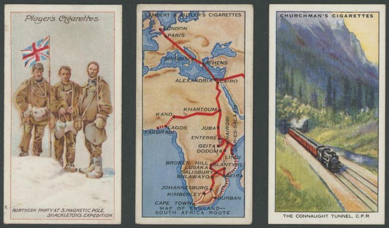 Collection 1909-94 in leaves including 1931 Churchman 'Empire Railways' [50]; 1934 Hill 'Aviation Series' [25]; 1936 Lambert & Butler 'Empire Air Routes' [50] x 2 sets; 1936 Ogdens 'Modern Railways' [50]; 1915 Players 'Polar Exploration' [25]; 1936 Players 'Motor Cars' [50], mainly Fair/Fine.