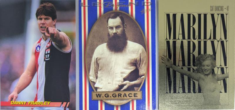 Large accumulation 1979-2019 in four count boxes & tub, mainly AFL with Select, TeamCoach & Herald-Sun; plus Cricket, F1, NRL, Batman Returns, Star Log, Andy Griffith Show, Marilyn, Terminator 2, Fright Flicks, Toy Story, Disney, Coca-Cola, Jaws 2, Super Stars of Music, phonecards, mainly Fine/Very Fine.