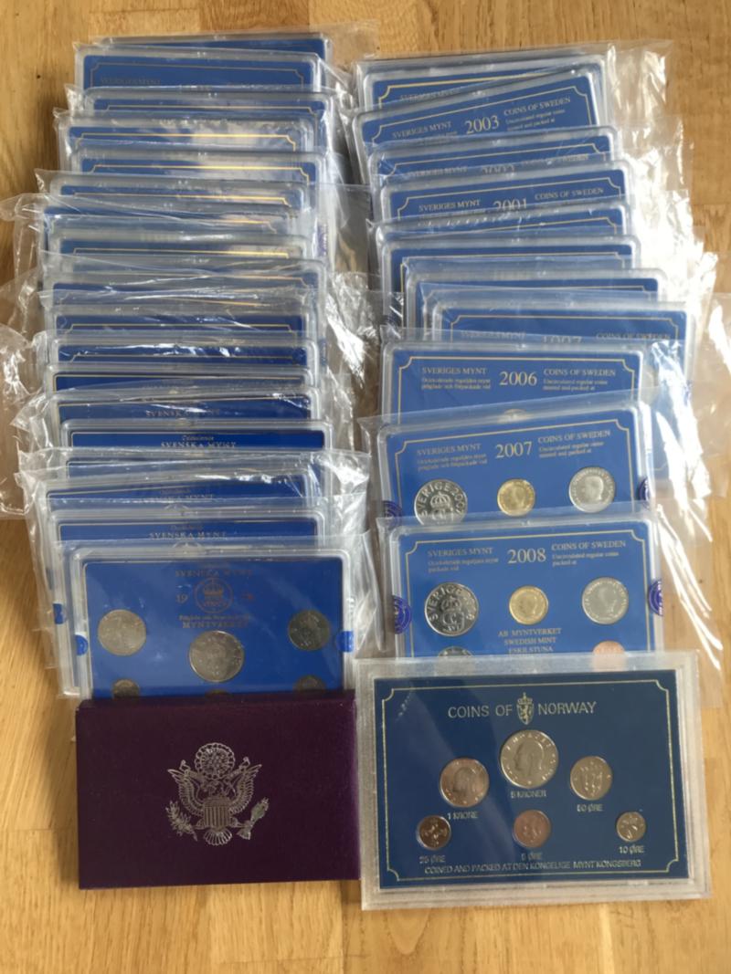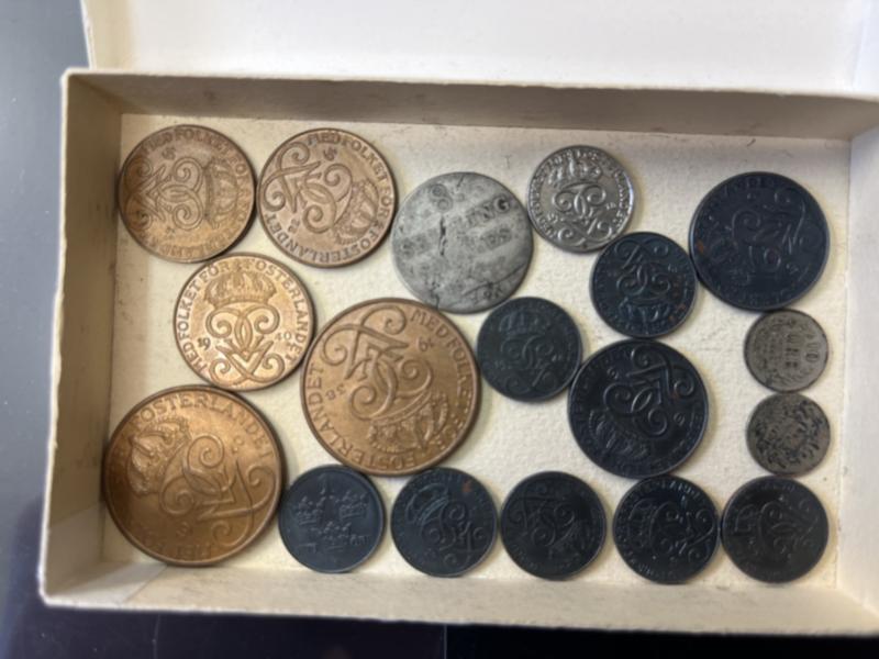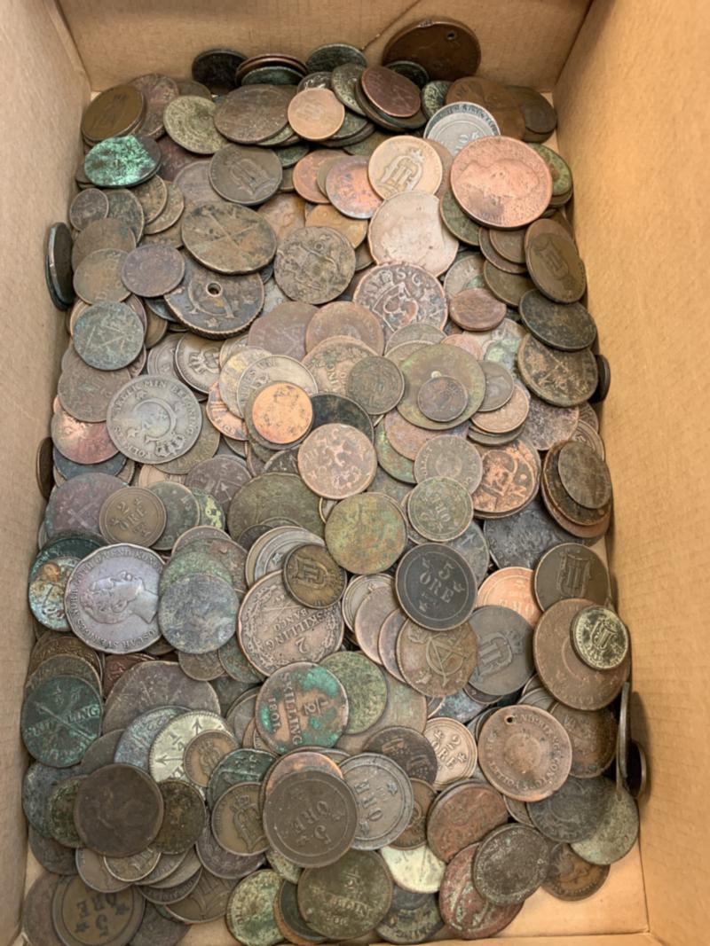 Sweden, Box with 1000s of coins mainly copper and nickel old–modern in e.g. nine binders and two Lembit coin boxes incl. some better. Also other countries incl e.g. 12 Finland 20 Markka 1934–1939, some medals, forgeries, etc. Approx. 29 kg. (Image1)