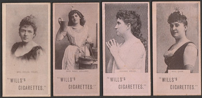 Wills: 1890s Actresses/Theatre Stars (4) with Madame Melba, Miss Maud Holland, Mrs Helen Trust & Mrs Shaw. All F-VF condition. (Image1)