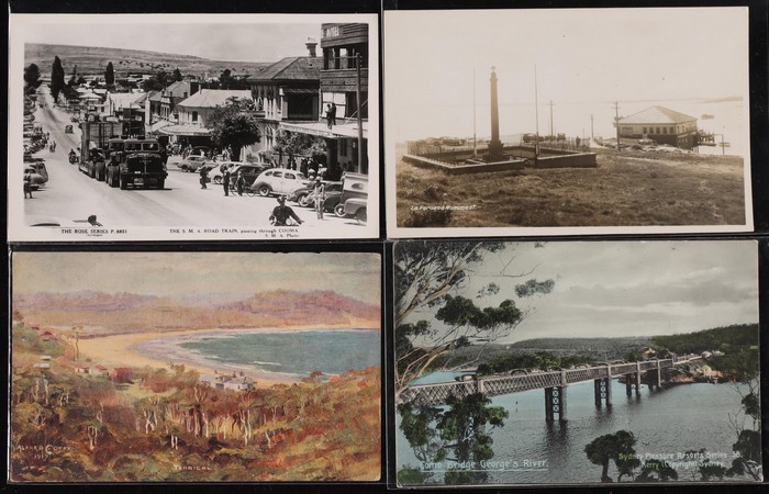 Australia - NSW: South East NSW early 1900s on collection (150) with Southern Coast (60) from Botany to Narooma inc Bulli Pass, Como, Cooma, Blakehurst, Georges River, La Perouse, Maruya & Sylvania. Also Southern Highlands (15) mainly Bowral. Canberra (20) nearly all 1960s-70s real photos, Goulburn (10) inc Auburn Street (3) & Albury (50) mostly 1940s-50s real photos inc Town Views, Street Scenes & City Sites. Mixed UN/U, mostly VF condition. Also 60 mixed medium size commercial photographs inc Kiama, Goulburn, Bowral & Albury. (210 items) (Image1)