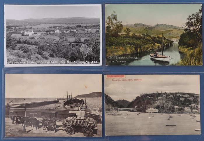 Australia - Tasmania: Collection (85) with 1950s/60s real photos inc Hobart Scenes, Mount Ida/Lake St Clair (Cantle artist cards), Launceston Views, County/Rural Scenes inc Macquarie Plains Hop Fields, Mt Wellington, New Norfolk, Sandy Bay, Deloraine, Beauty Point Pier, Brown River & Port Arthur. Also 1960s-70s Drop-Downs (10) inc Hobart, Hadspen, Launceston & East Coast plus 30 assorted photographs. Generally VF condition. (125) (Image1)