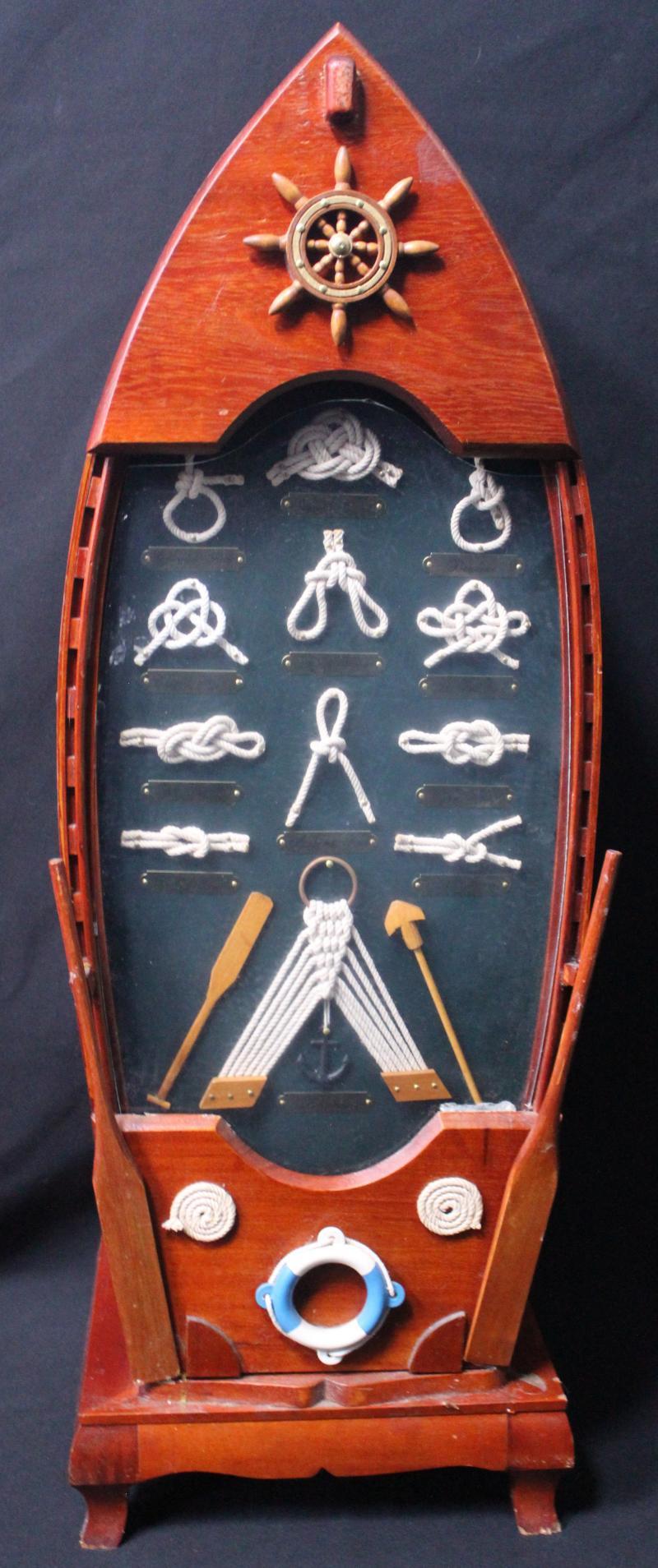 Knot displays boat-shaped cabinet, 81cm tall, with knots display in front (cabinet glued shut but looks attractive); plus two smallkey cabinets with knot displays on front, each 34x28cm, mainly Fair/Fine.
