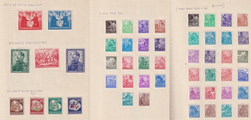 Germany-East 1949-66 mint colln on pages appears complete but without m/ss, odd small blemishes, but tidy lot, noted both printings of 1953 Five Year Plan sets. SG cat £2800. (Image)
