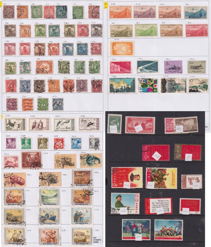 China c1898-c1968 mostly used seln on 4 circuit book pages & Hagner. 120 stamps. Ordinary lot except 9 1967-8 stamps cat £400+ alone. (Image)
