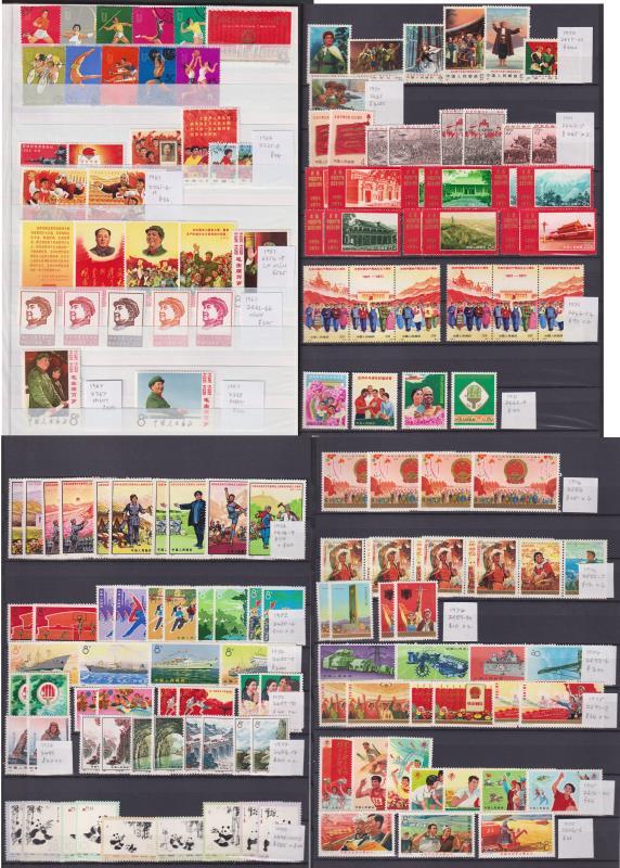 China 1949-80 range of approx 1100, almost all complete sets, in 2 16 page s/bs incl: 1949-51 reprint sets x 13, then 1952-67 mixed mint & CTO sets, 1967-80 MUH sets (some dupn). Many better sets noted incl 1967 SG 2354-8, 2362-6, 2367-8, 1970 2435-40, 1971 2442-5, 1972 2485-8, 1974 2593-6 (these alone cat £2500). Total SG cat approx £6750. Nice condition. (Image)