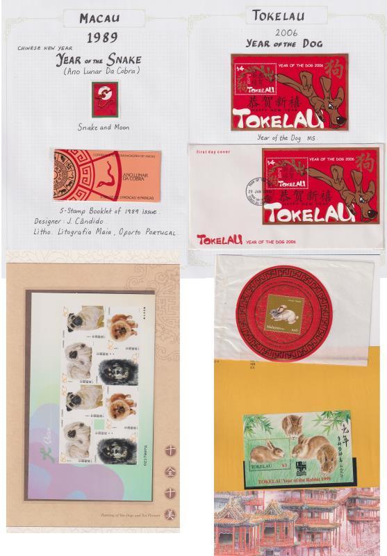 Chinese New Year 1990s-2000s extensive colln/accum on annotated pages, plus box of items not mounted & China 2006 special album. A remarkable range of countries & all 12 animals of the zodiac covered. Nearly all MUH but incl a few covers. Maybe about 1000 different sets. (Image)