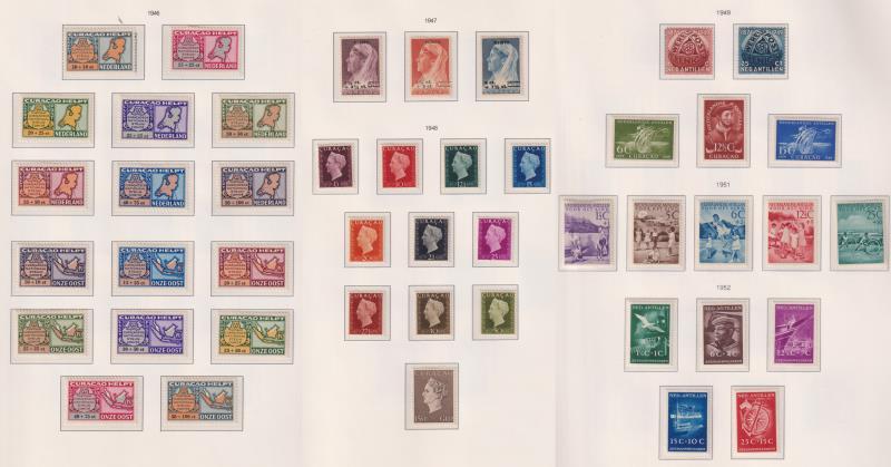 Curacao-Netherlands Antilles 1873-1983 comprehensive (near complete from 1948) mint/MUH in mounts in Importa illustrated album with slipcase. Noted 1948 Queen Wilhelmina set of 11 mint; 1950 Queen Juliana 1½g grey-green & 2½g sepia mint; 1951 Child Welfare set of 5 mint; 1952 Seamen's Welfare fund set of 5 MUH. SG cat £1500+. (Image)